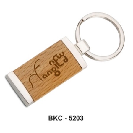 Dual Cap Beechwood Keychain ? Engraving Friendly