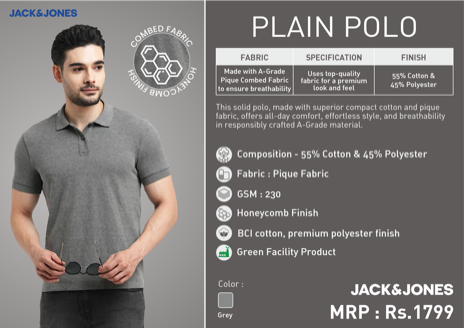 JJPR Solid Inst Polo – Grey