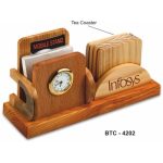 Wooden Coaster & Mobile Stand With Clock quantity